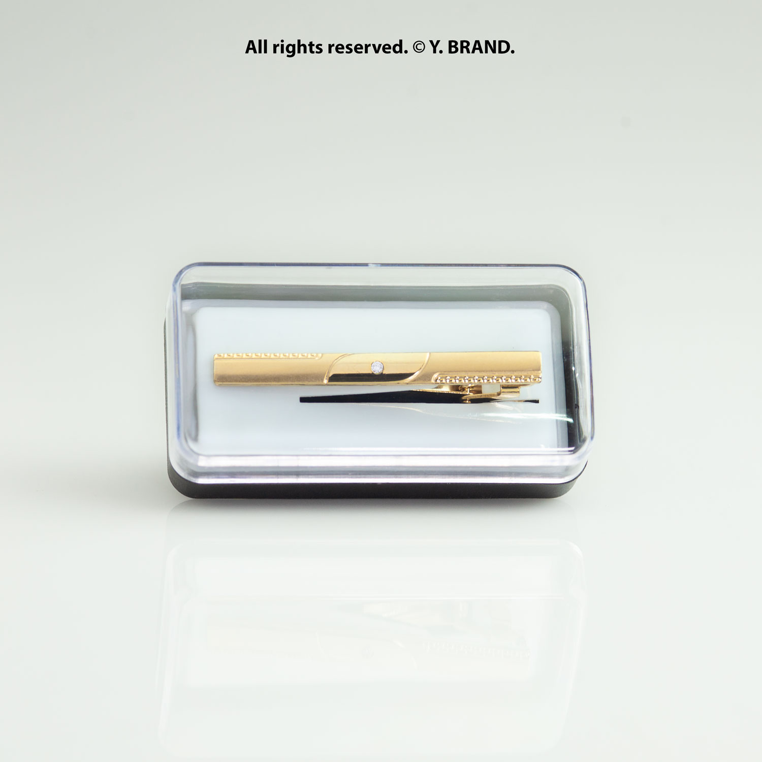Sharp lines. Iconic detail. Keeps your tie in place all day. A precision-crafted tie clip built for the modern gentleman finished with a gold tone, secure slide-lock mechanism, and curved accent detailing. Perfect for formal events, office wear, and gifting.