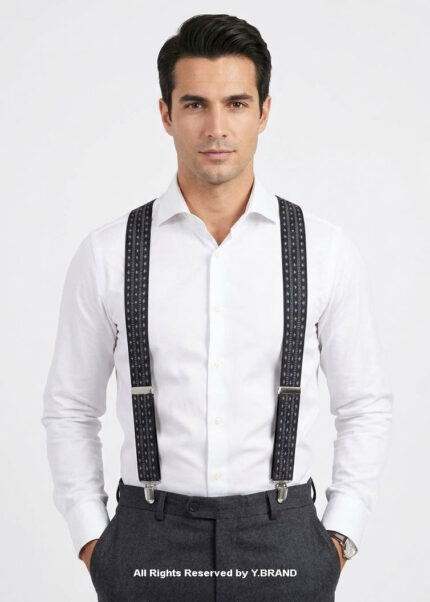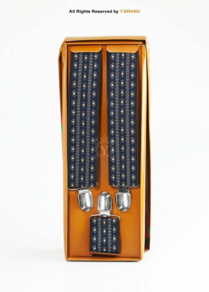 Navy & Silver Diamond Jacquard Men’s Suspenders-SB-1063