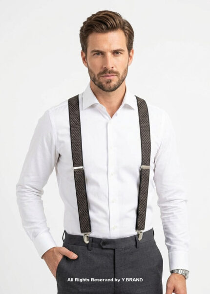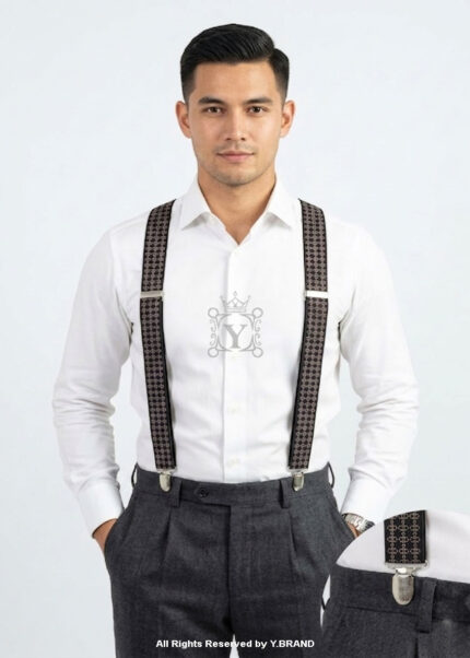 Premium Bronze Geo Jacquard Suspenders-SB-1064