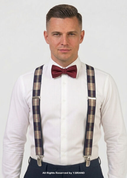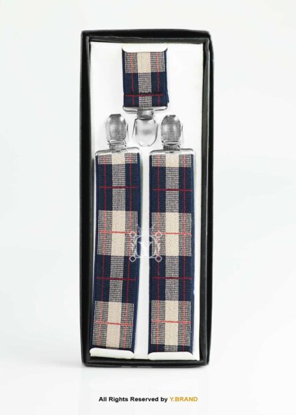 Navy & Cream Windowpane Tartan Suspenders-SB-1077