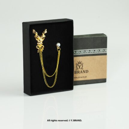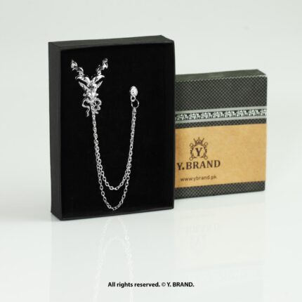 Markhor brooch, Collar pin with Diamond & Chain B-1103