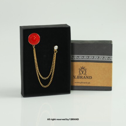 Gold Brooch Red Clock Dial Double Chain – B-1137