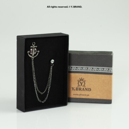 Gunmetal Brooch Nautical Anchor Double Chain – B1147