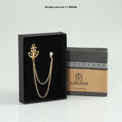 Gold Brooch Nautical Anchor Double Chain – B-1148