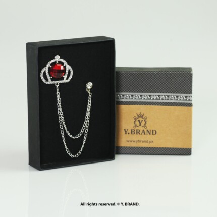 Silver Brooch Red Crown Crystal Double Chain – B-1138