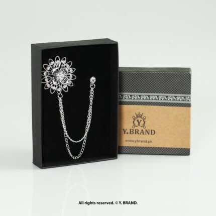 Silver Brooch Floral Filigree Double Chain – B-1141