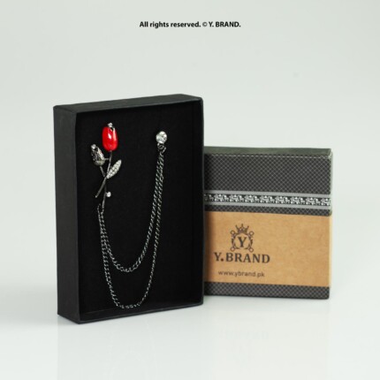 Silver Brooch Red Tulip Floral Double Chain – B-1146