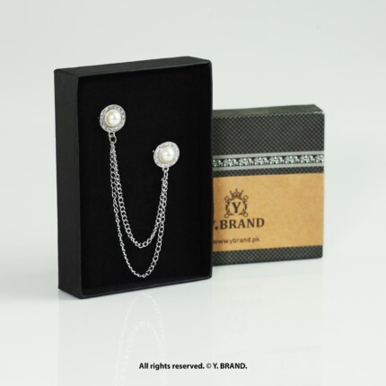 Silver Brooch Pearl Round Double Chain – B-1154