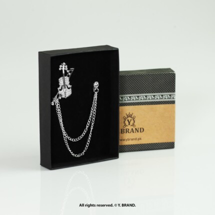 Silver Brooch Crystal Crown Double Chain – B-1144