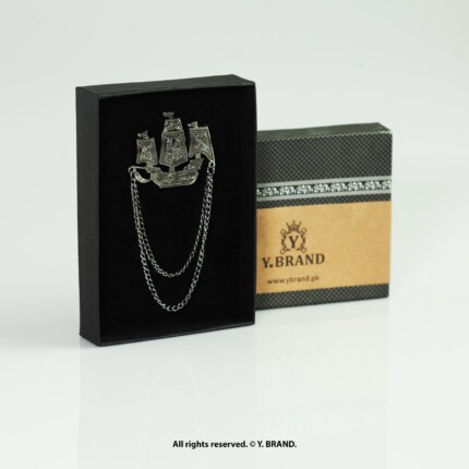 Silver Brooch Sailing Ship Double Chain – B-1156