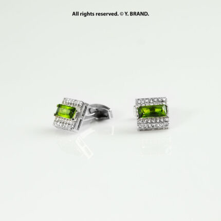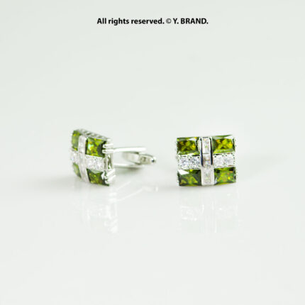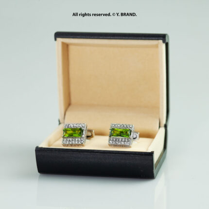 Green & Silver Cufflink Square Crystal – CL-0141