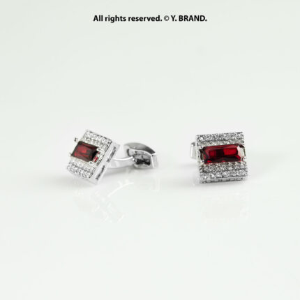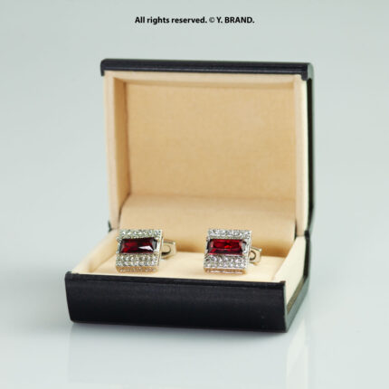 Red & Silver Cufflink Rectangle Crystal – CL-0146