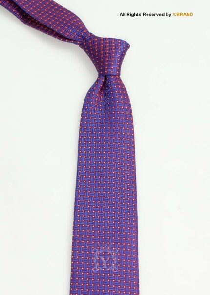 Blue & Red Silk Tie Geometric Pattern – T-196