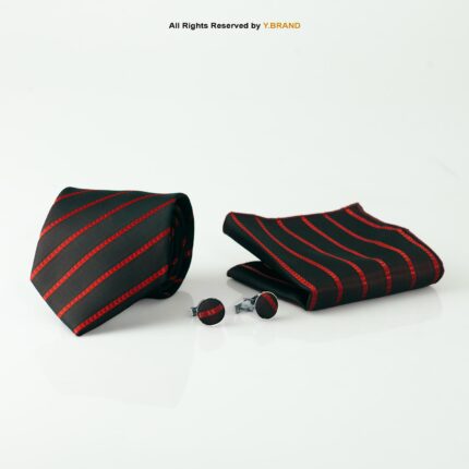 Black & Red Striped Tie Gift Set: Necktie, Pocket Square & Cufflinks TS-1075