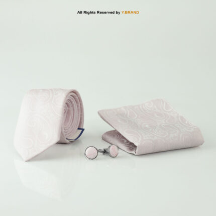 Blush Pink Paisley Tie Gift Set – 3pc Wedding Necktie, Pocket Square & Cufflinks TS-1077