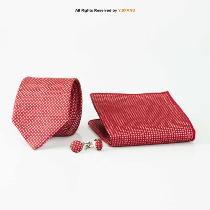 Crimson Red Micro-Pattern Tie Gift Set – 3pc Premium Silk Necktie, Pocket Square & Cufflinks TS-1079