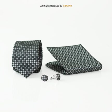 Charcoal Geo Dobby Tie Gift Set – 3pc Premium Silk Necktie, Pocket Square & Cufflinks TS-1080