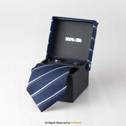 Y.BRAND-Blue and White Pin Stripped Tie and Cufflink Gift Set-TS-026