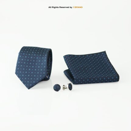 Navy Blue Patterned Tie Set: Silk Necktie, Pocket Square & Cufflinks TS-1070