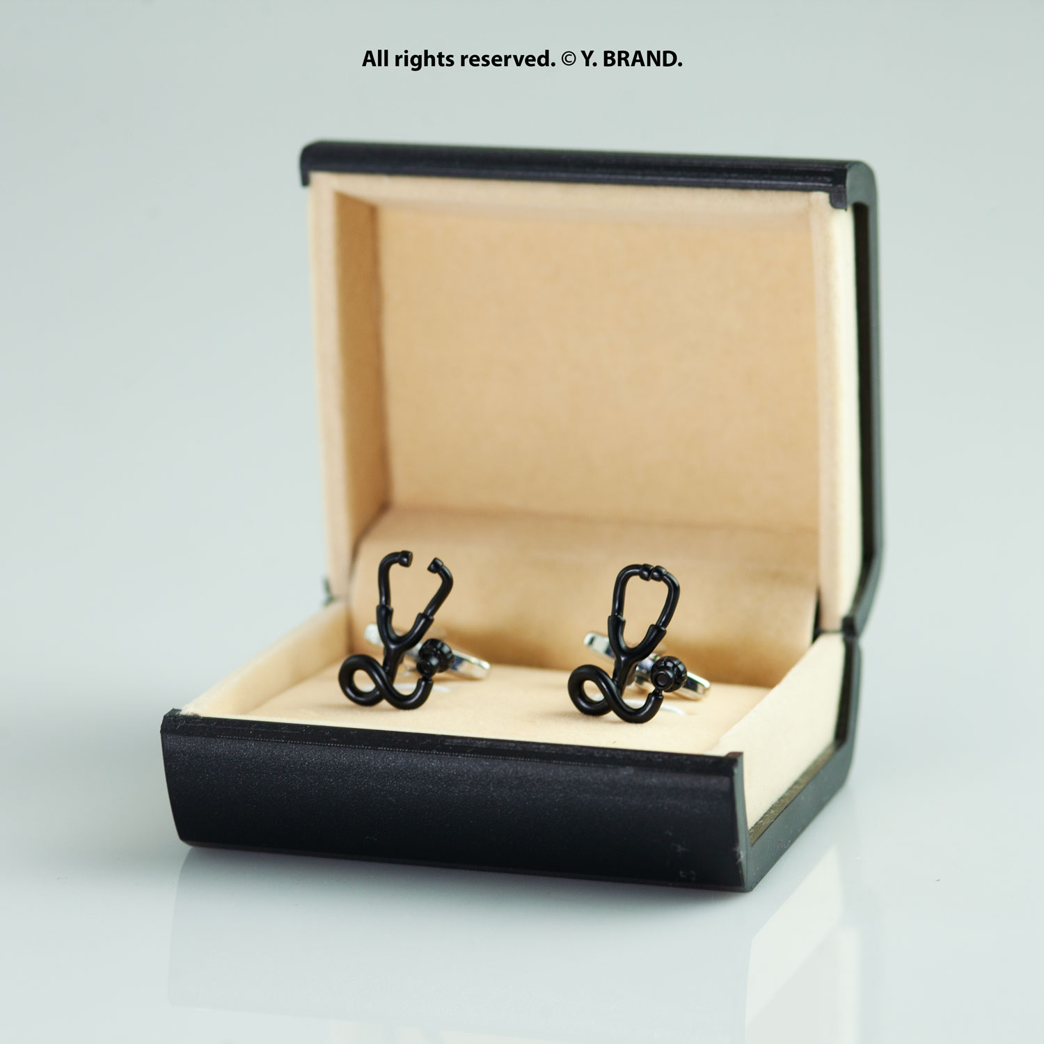 Black Cufflink Medical Stethoscope Design – CL-0181