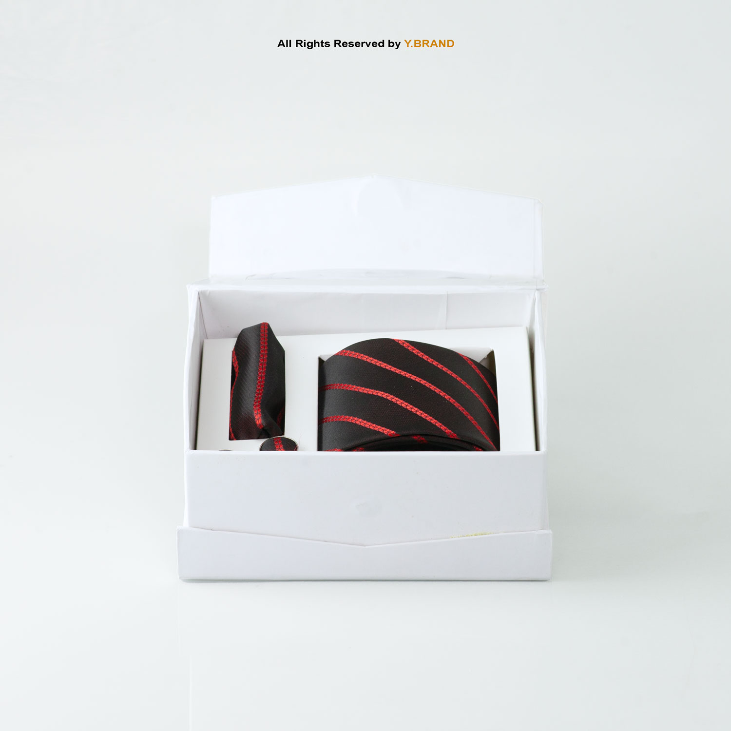 Black & Red Striped Tie Gift Set: Necktie, Pocket Square & Cufflinks TS-1075