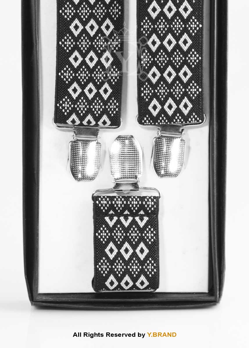 Bold Monochrome Diamond Jacquard Suspenders-SB-1071