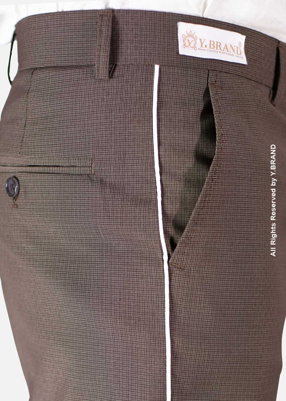 Moreover, YBRAND incorporates special color treatment into these trousers to ensure that the rich brown tone and detailed micro checks retain their appearance after multiple washes, maintaining the long-lasting branded look YBRAND is trusted for.
