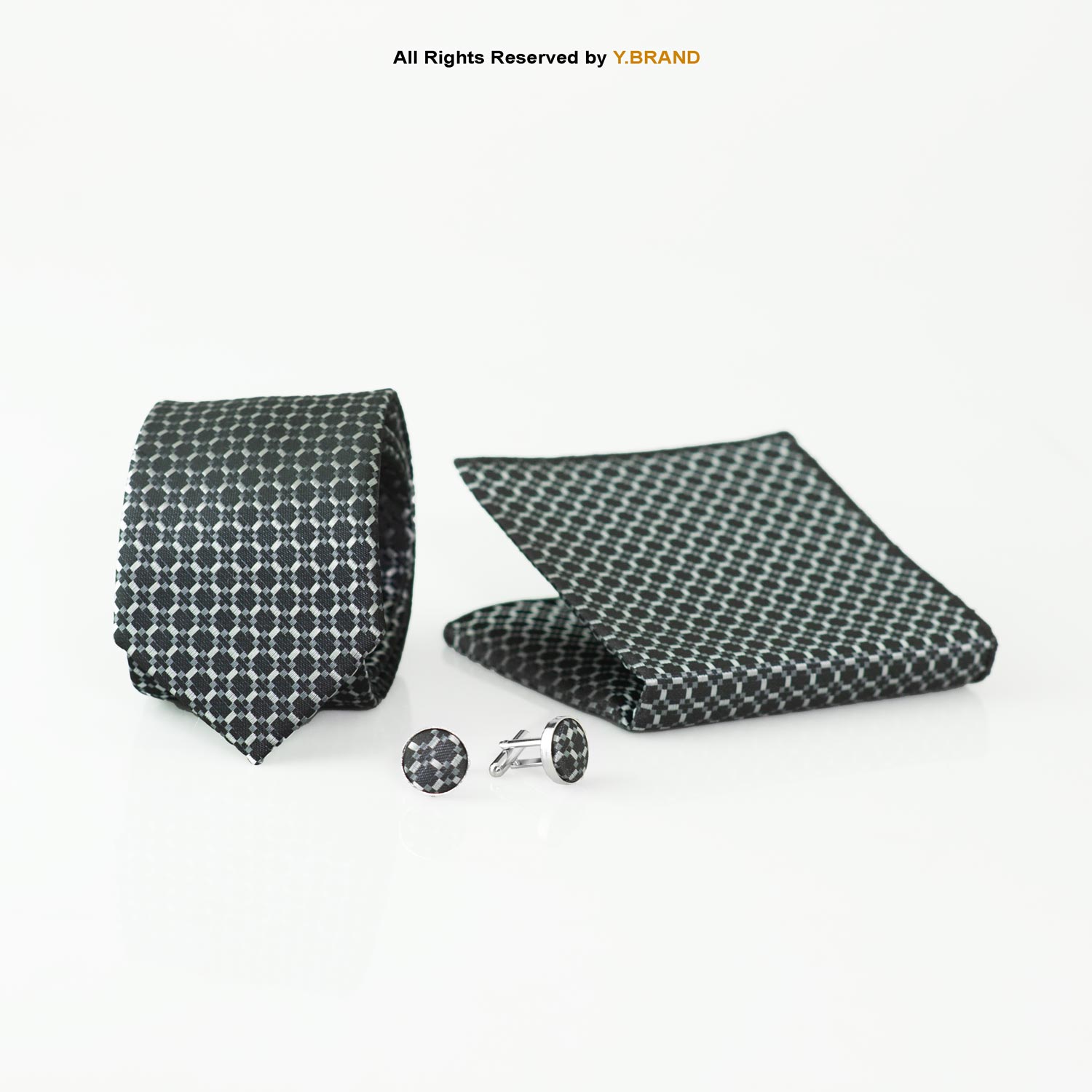 • Completeness: A complete, ready-to-use set with a perfectly coordinated tie, pocket square, and cufflinks.