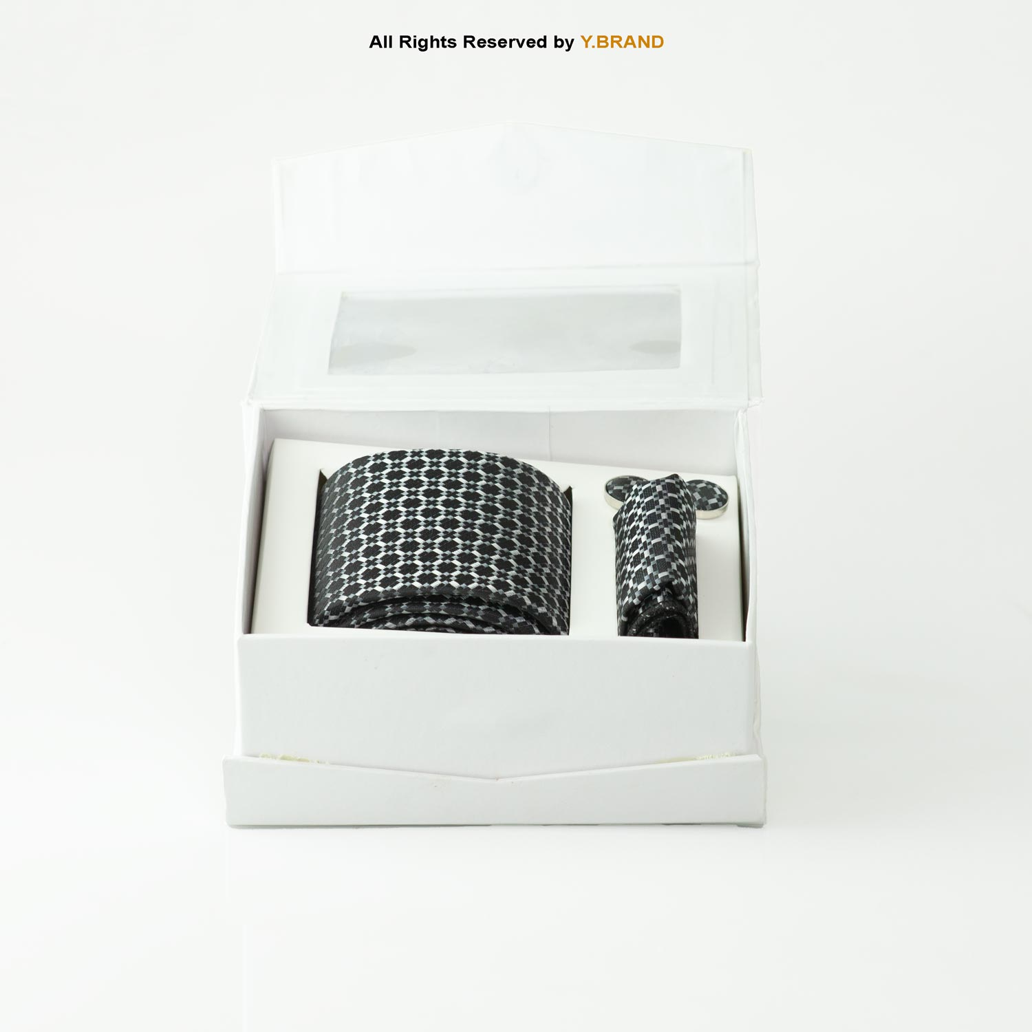 Elevate your formal attire with this sophisticated Charcoal Geo Dobby Tie Gift set from Y.BRAND. Crafted from premium jacquard dobby fabric, this 3-piece collection features a timeless charcoal geo pattern with black accents. The set includes a perfectly matched necktie, a crisp pocket square, and coordinating round cufflinks, all showcasing the elegant design for a cohesive and high-impact look. Engineered for the modern professional and stylish wedding guest, this set ensures instant sophistication and flawless presentation.