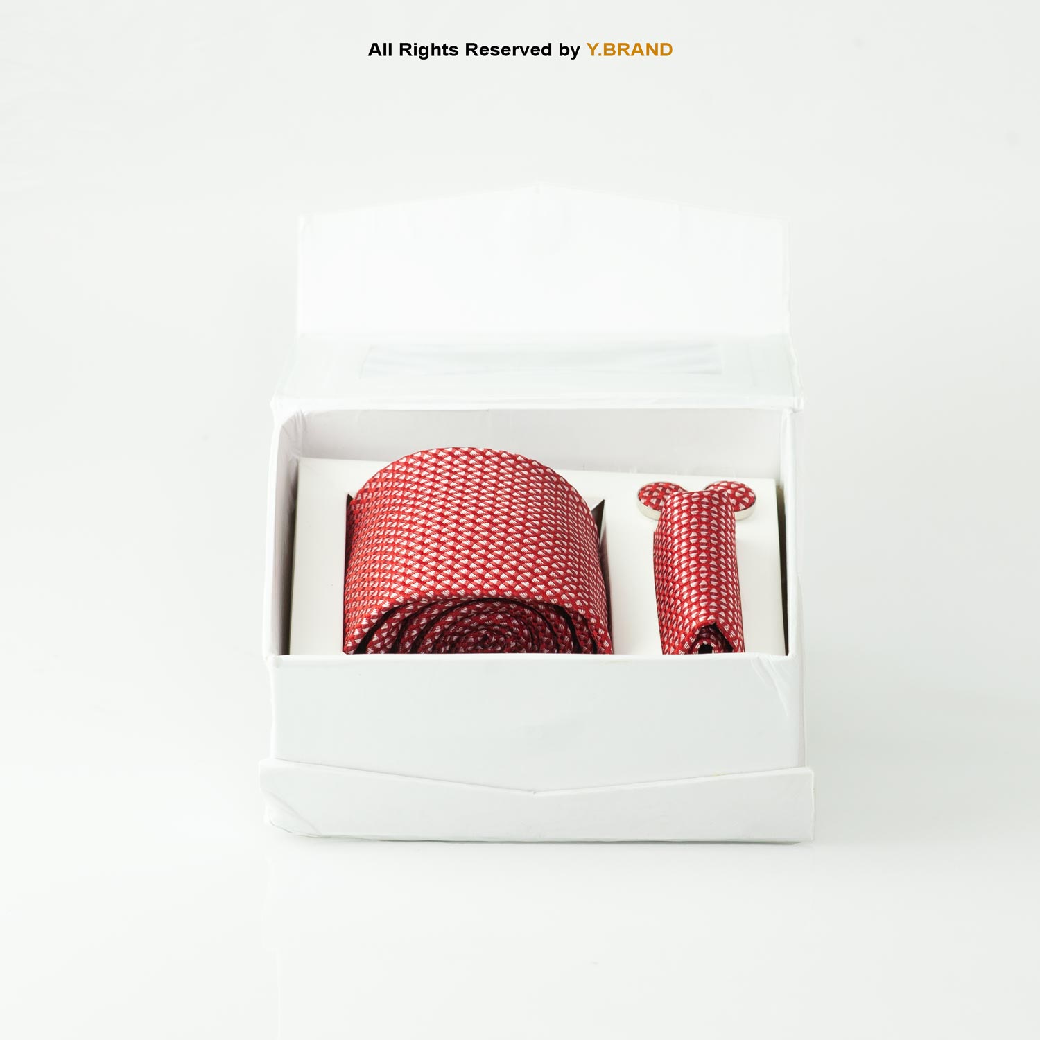 Crimson Red Micro-Pattern Tie Gift Set – 3pc Premium Silk Necktie, Pocket Square & Cufflinks TS-1079