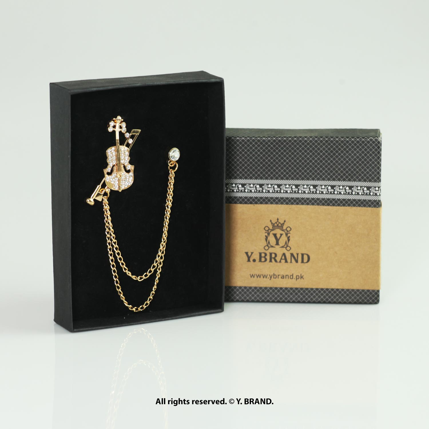 Gold Brooch Crystal Violin Double Chain – B-1139