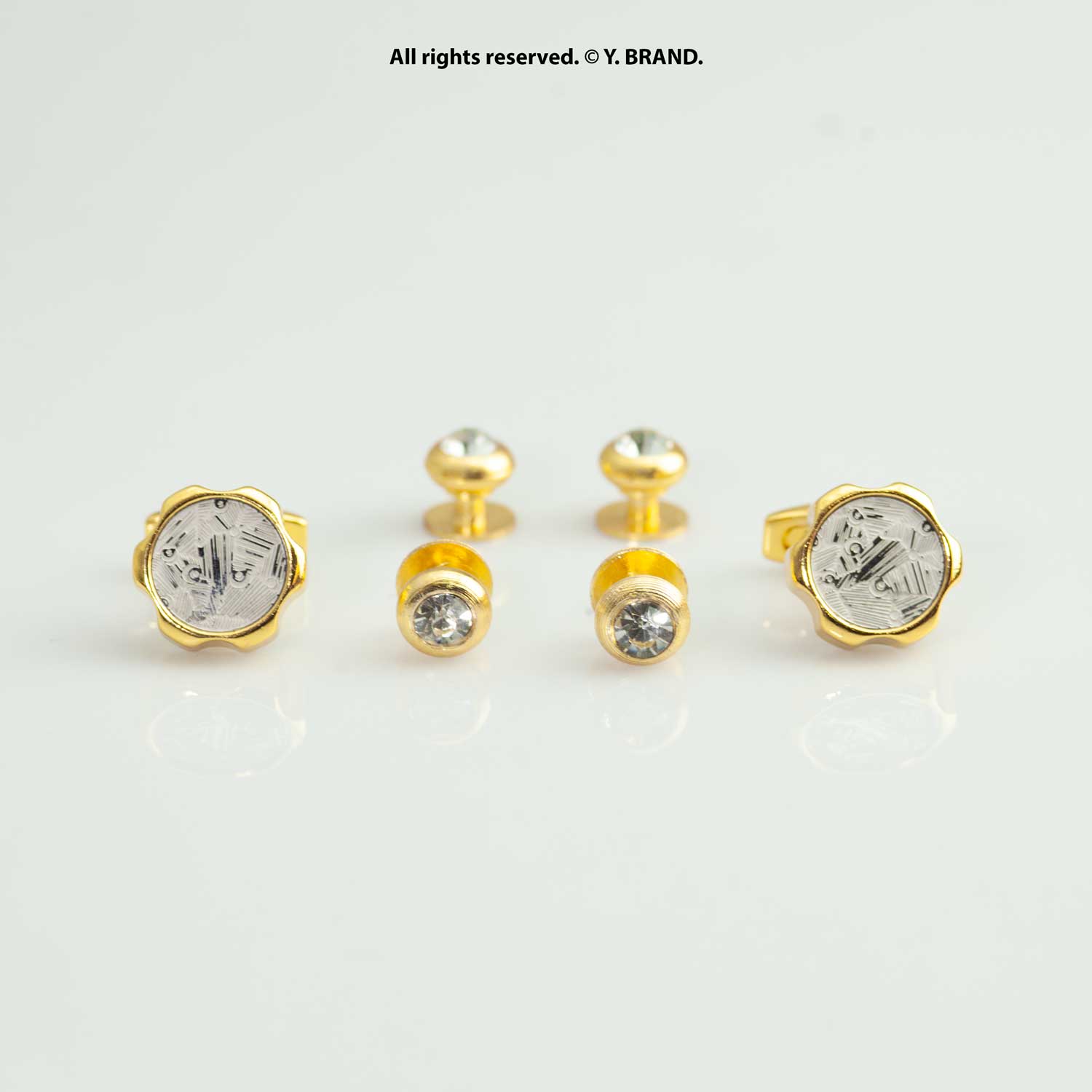 Gold & Silver Cufflink Set Vintage Engraved Round Design – CLS-1018