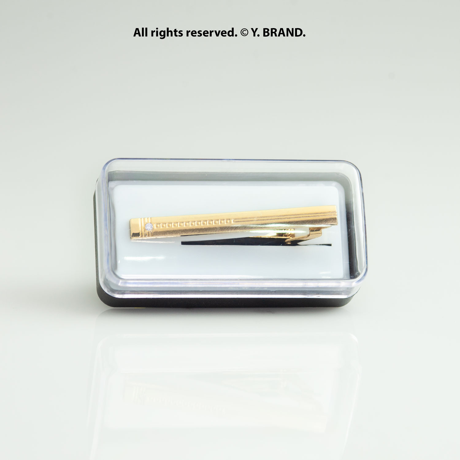 Sharp lines. Iconic detail. Keeps your tie in place all day. A precision-crafted tie clip built for the modern gentleman finished with a gold tone, secure slide-lock mechanism, and textured bar detailing. Perfect for formal events, office wear, and gifting.