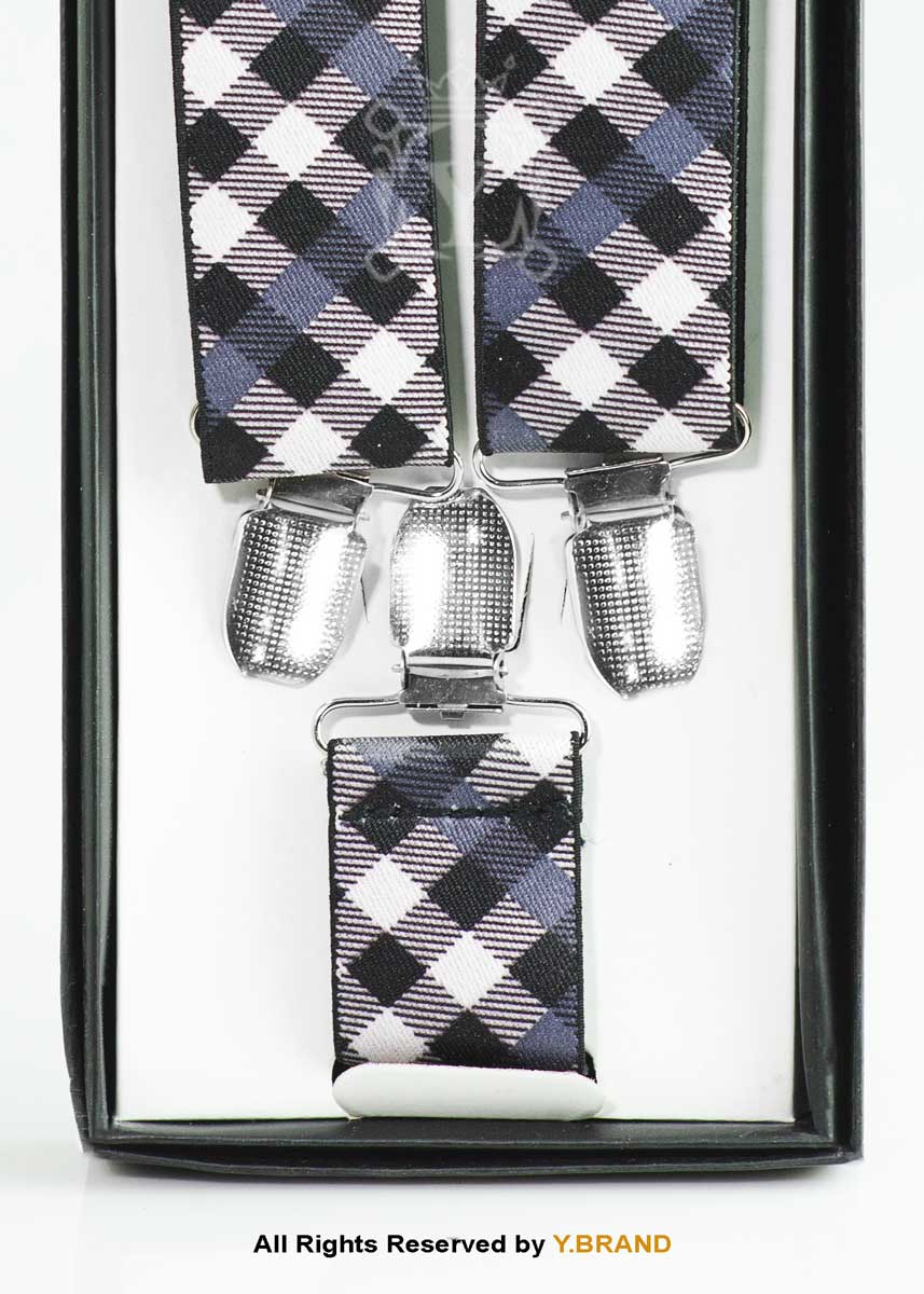Add a touch of timeless pattern to your wardrobe with the SB-1072a Gingham Plaid Suspenders by Y.BRAND. Featuring a sophisticated multi-tonal check pattern in slate grey, black, and crisp white, these suspenders offer a versatile look that bridges the gap between traditional heritage and modern style.
