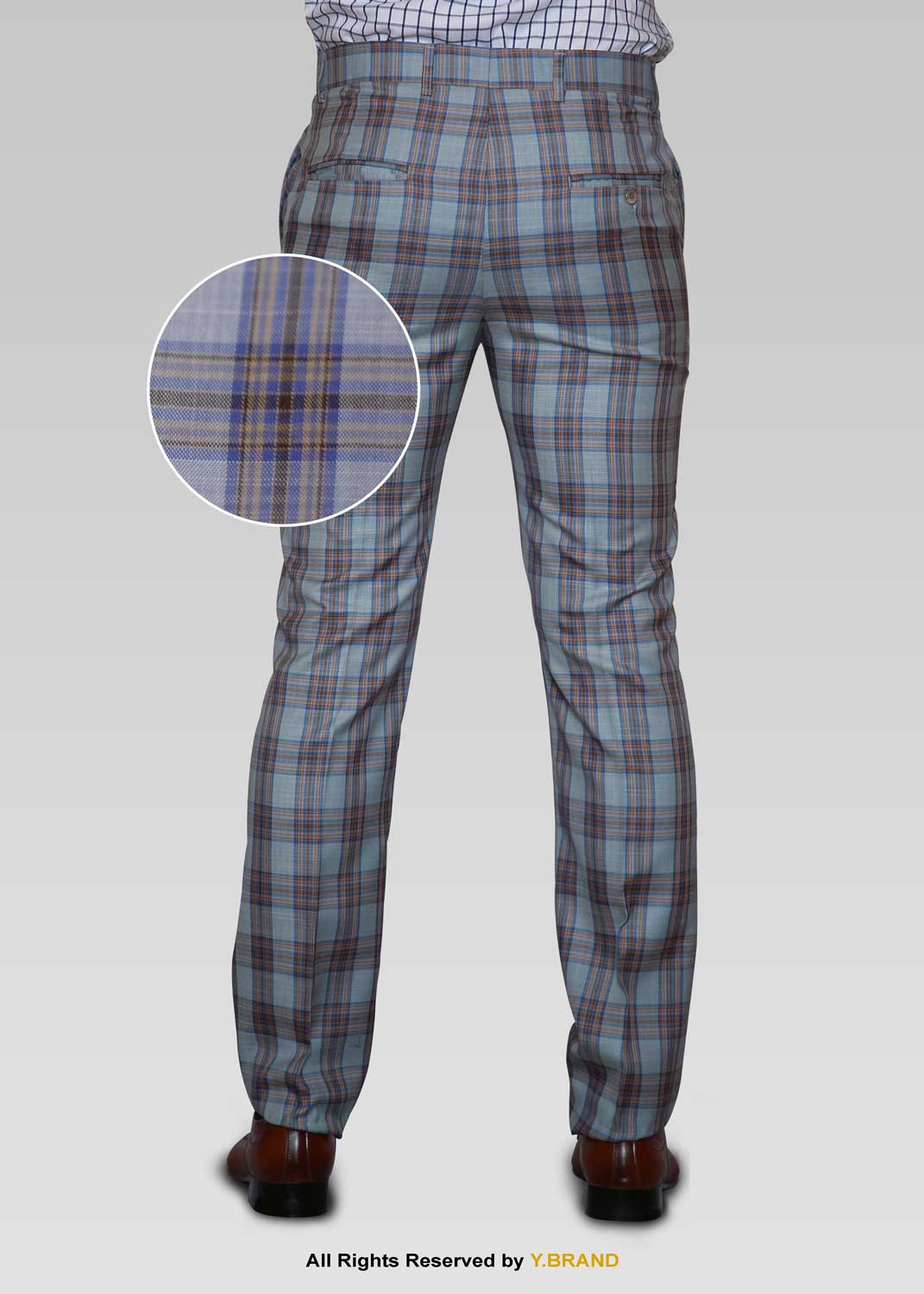 Grey Slim-Fit Plaid Check Trousers for Men – DP-1014 | YBRAND