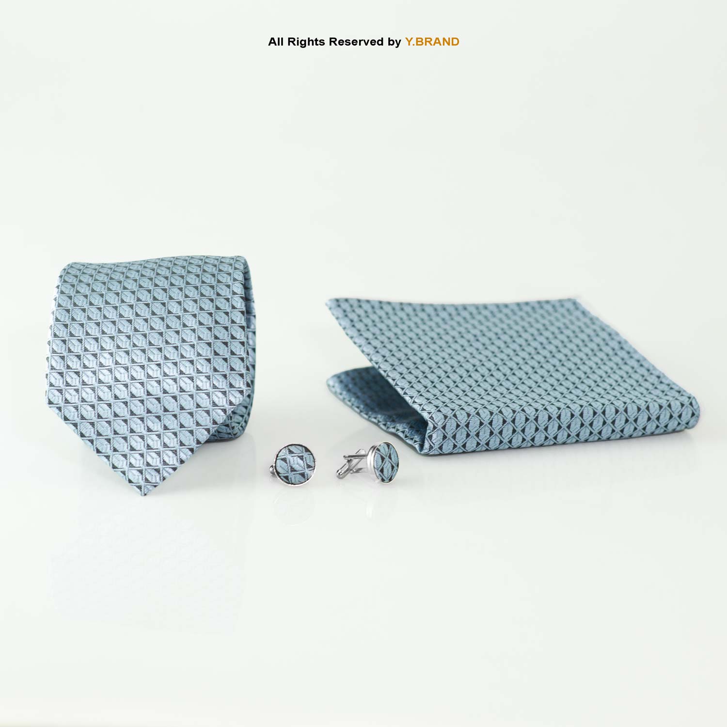 Light Blue Geometric Tie Gift Set: Necktie, Pocket Square & Cufflinks TS-1072