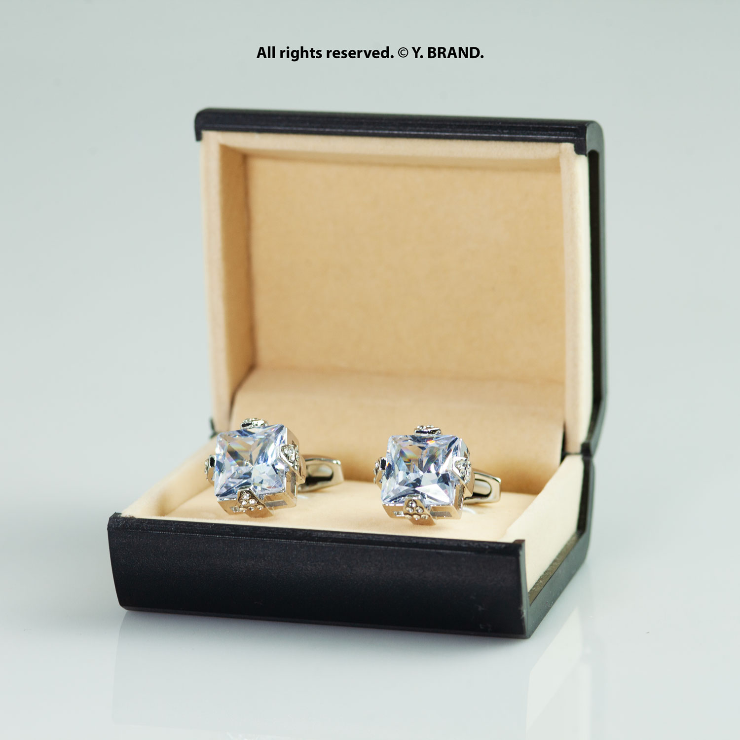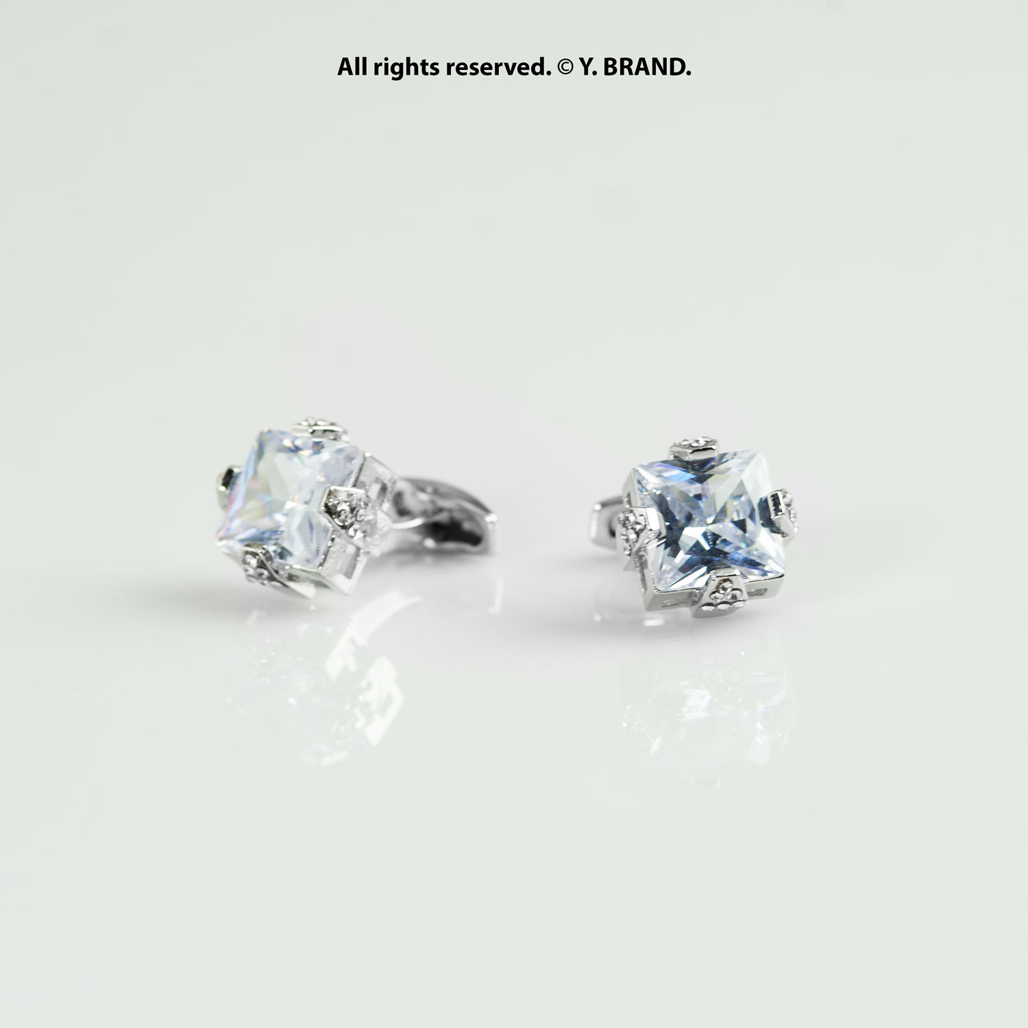 Luxury Silver Cufflinks with Big Zircon-CL-0130