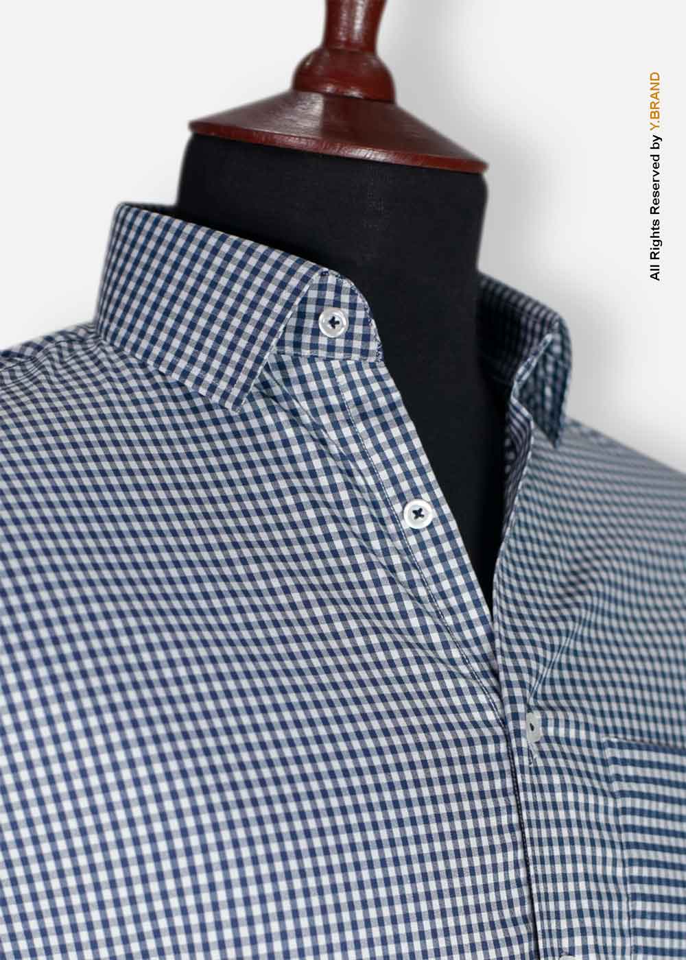 A two-tone check formal shirt will Intensify your wardrobe collection. Β The check style is globally recognized and will look dashingly in the workplace. Itβs made up of lycra with a blend of cotton. The fabric feels super soft and Stretchable. The Round cuff style is used to design this shirt. Mother of pearl buttons is used on button take and cuffs. The spread collar gives a contemporary yet refined look.