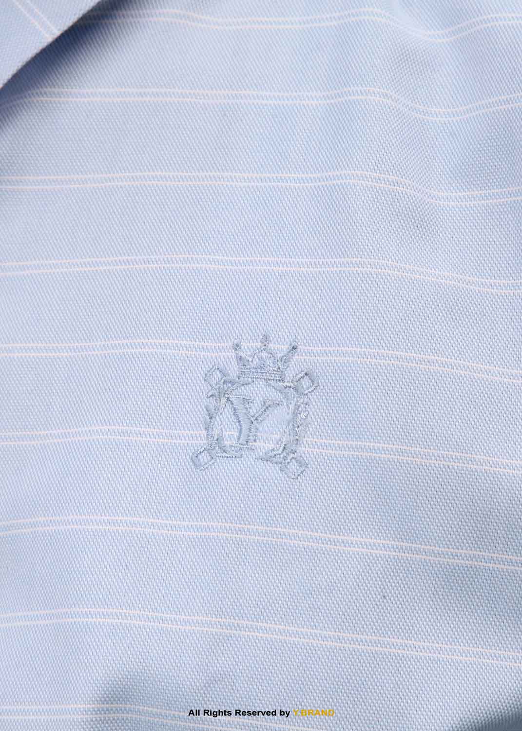 This is a Polo sky blue Lining Casual shirt with a ban collar. Horizontal lining polo fabric is used with a designer ban collar to design this remarkable Y.BRAND shirt. There is a signature logo of Y.Brand on the front of the shirt. Round cuff style and mother of pearl buttons are used.