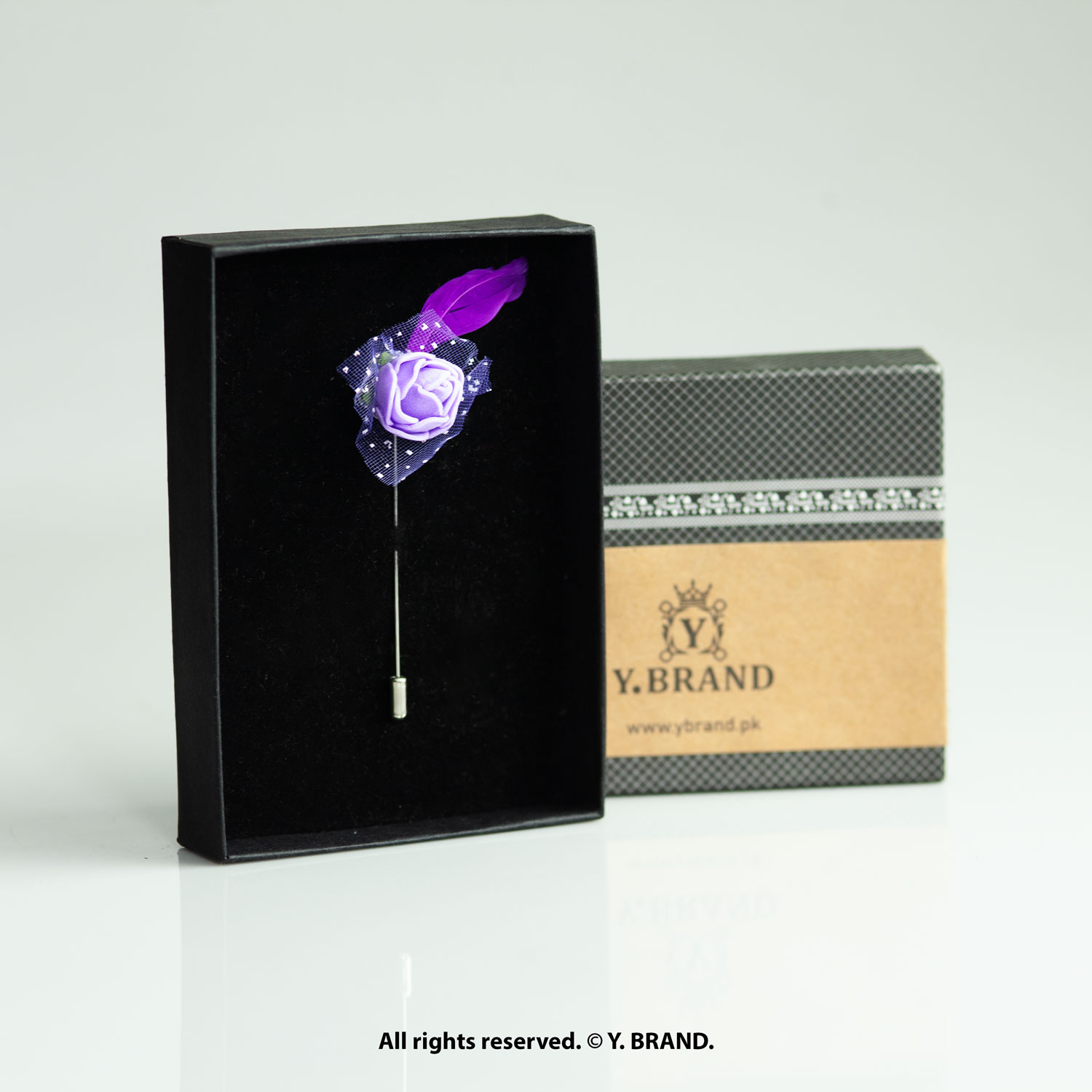 Purple & Silver Lapel Pin Luxury Floral Feather – LP-052