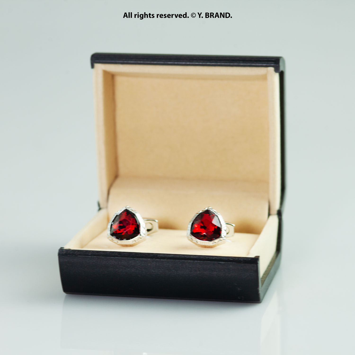Red & Silver Cufflink Triangle Crystal – CL-0143