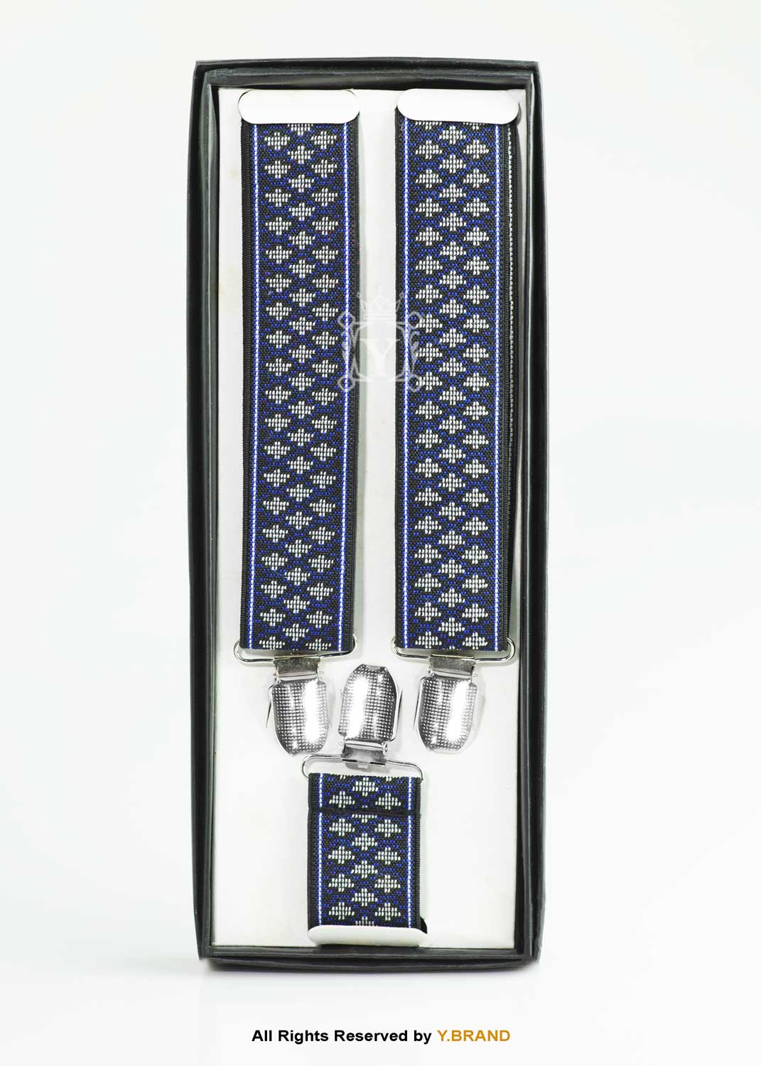 Royal Blue Cross-Stitch Jacquard Men’s Suspenders-SB-1070