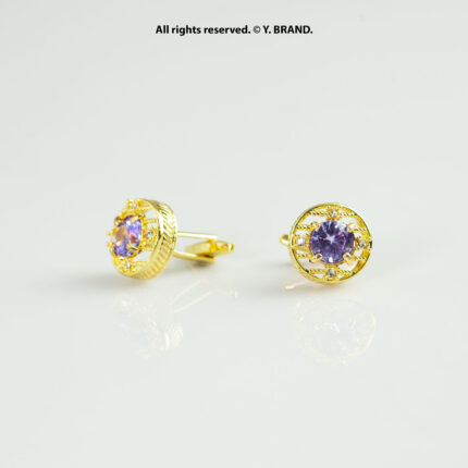 Gold & Purple Cufflink Floral Crystal – CL-0157