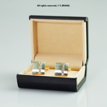 Gold & Silver Cufflink Curved Crystal Strip – CL-0168