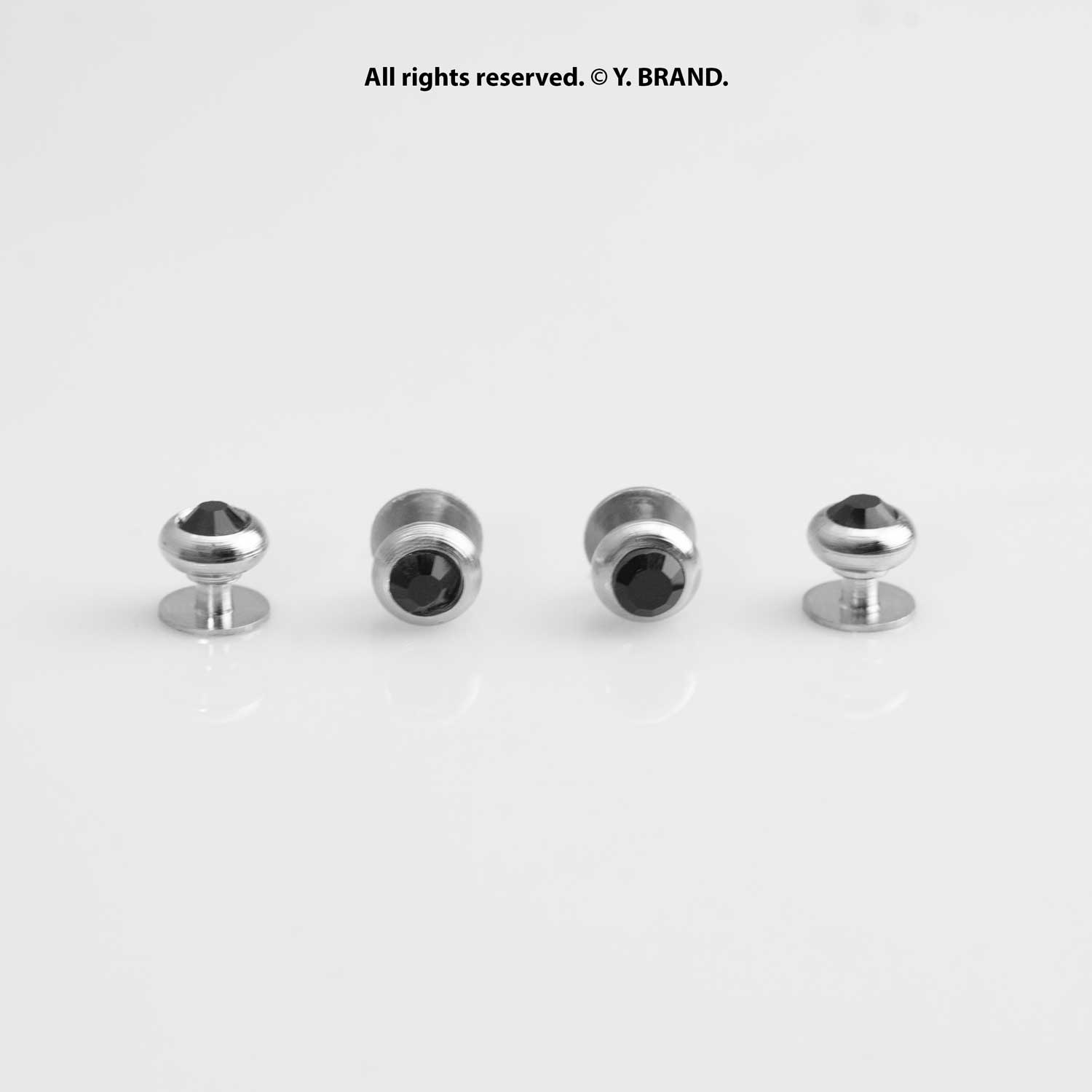 Silver & Black Cufflink Set Faceted Stone Round Design – CLS-1017