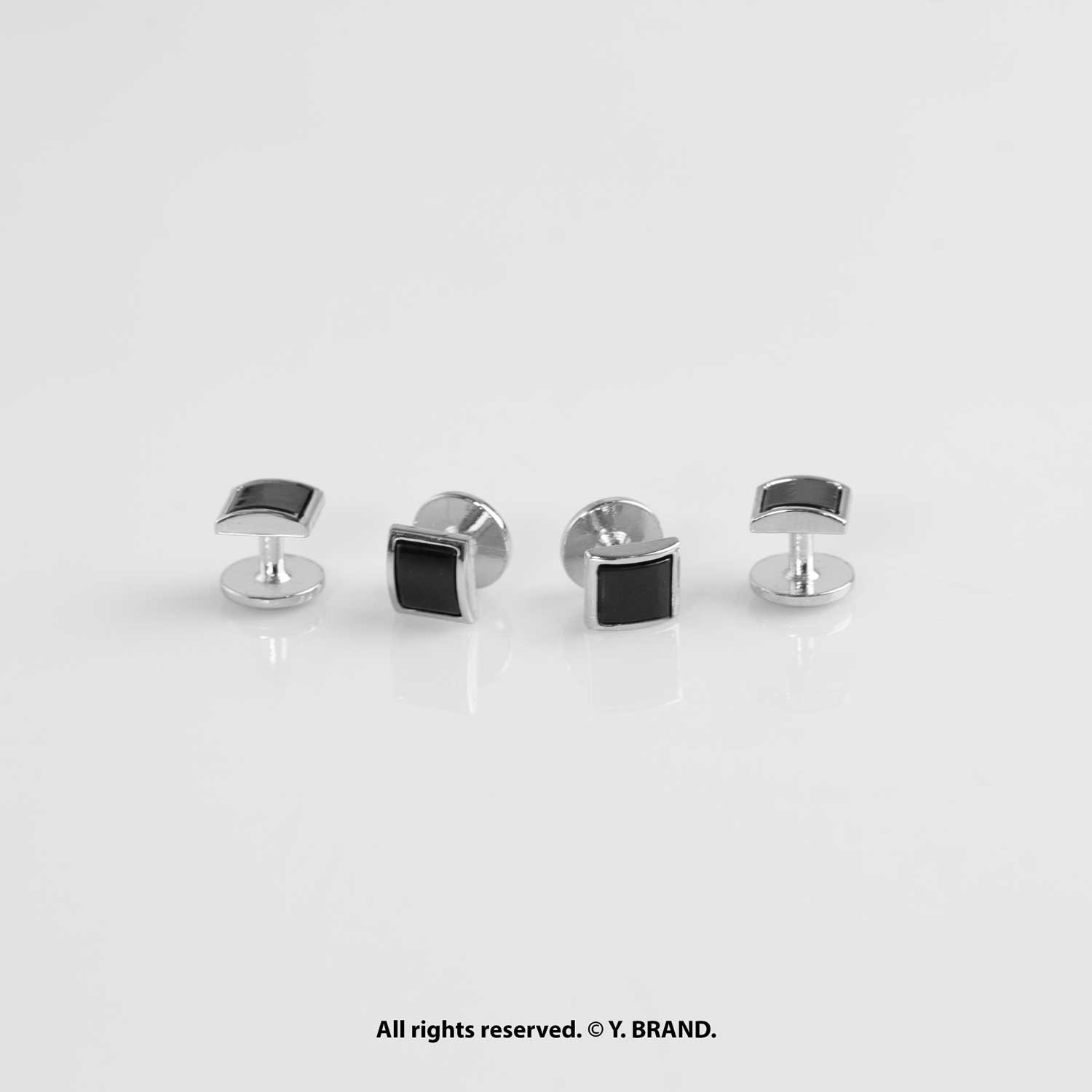 Silver & Black Cufflink Set Geometric Stone Design – CLS-1013