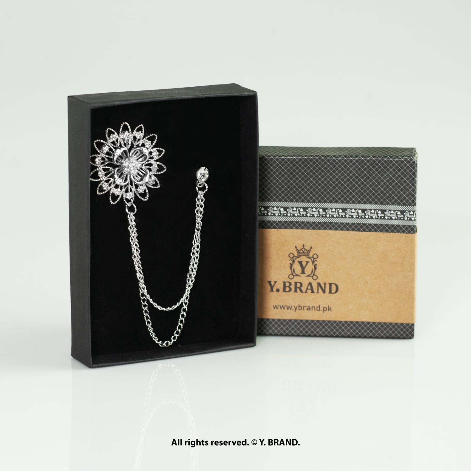 Delicate design. Statement presence. Wearable art for every occasion. A beautifully crafted brooch that adds character to blazers, sherwani, scarves, and formal wear—finished in silver tone with double chain detailing and a secure pin-back clasp.