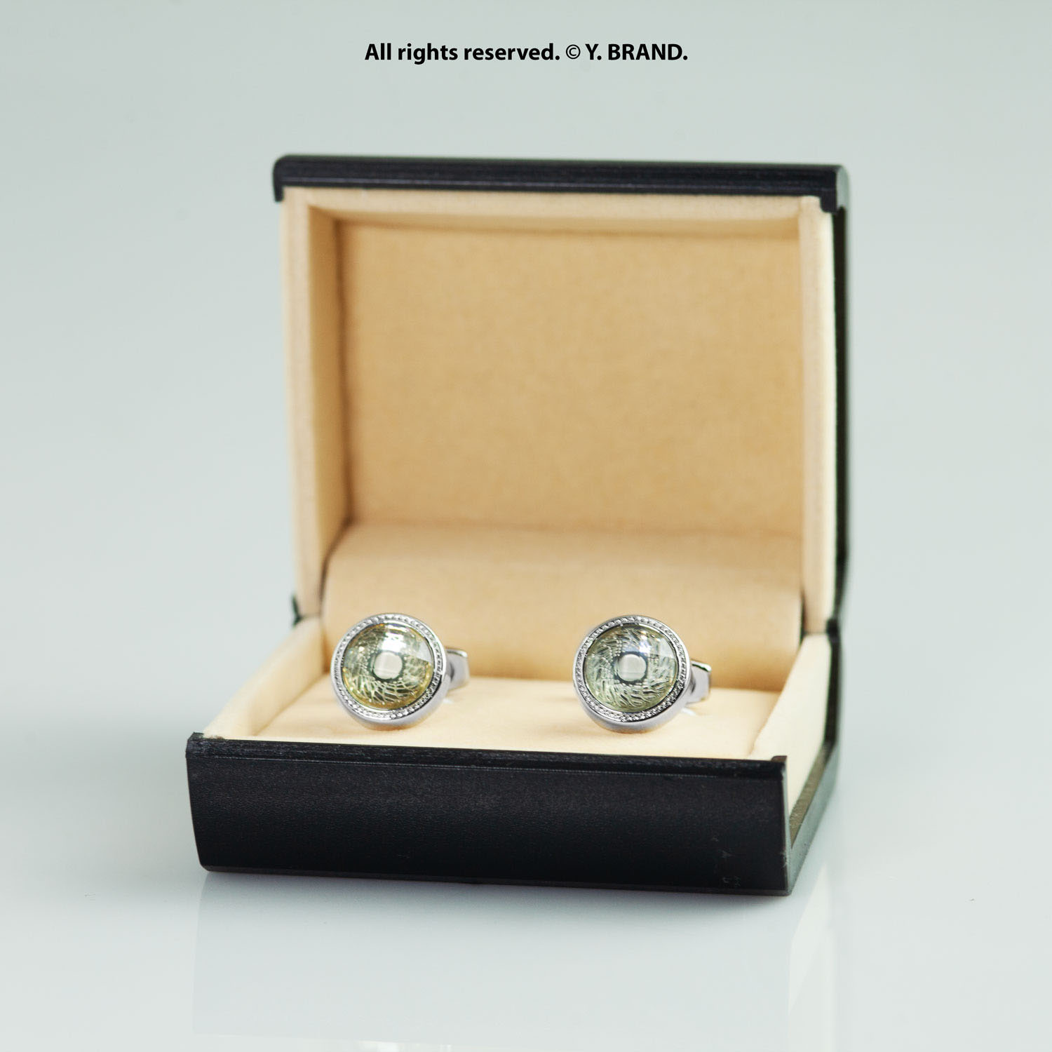 Silver & Green Cufflink Round Textured Crystal – CL-0164