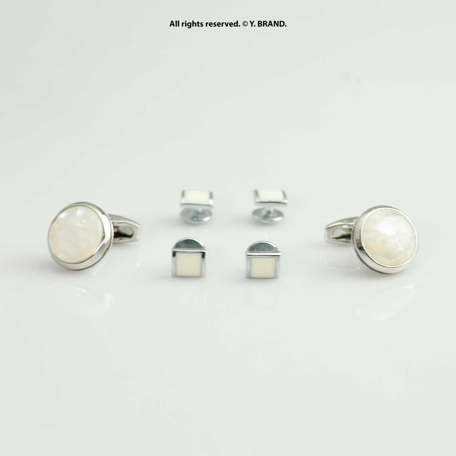 Silver & Ivory Cufflink Set Classic Round Pearl Finish Design – CLS-1019