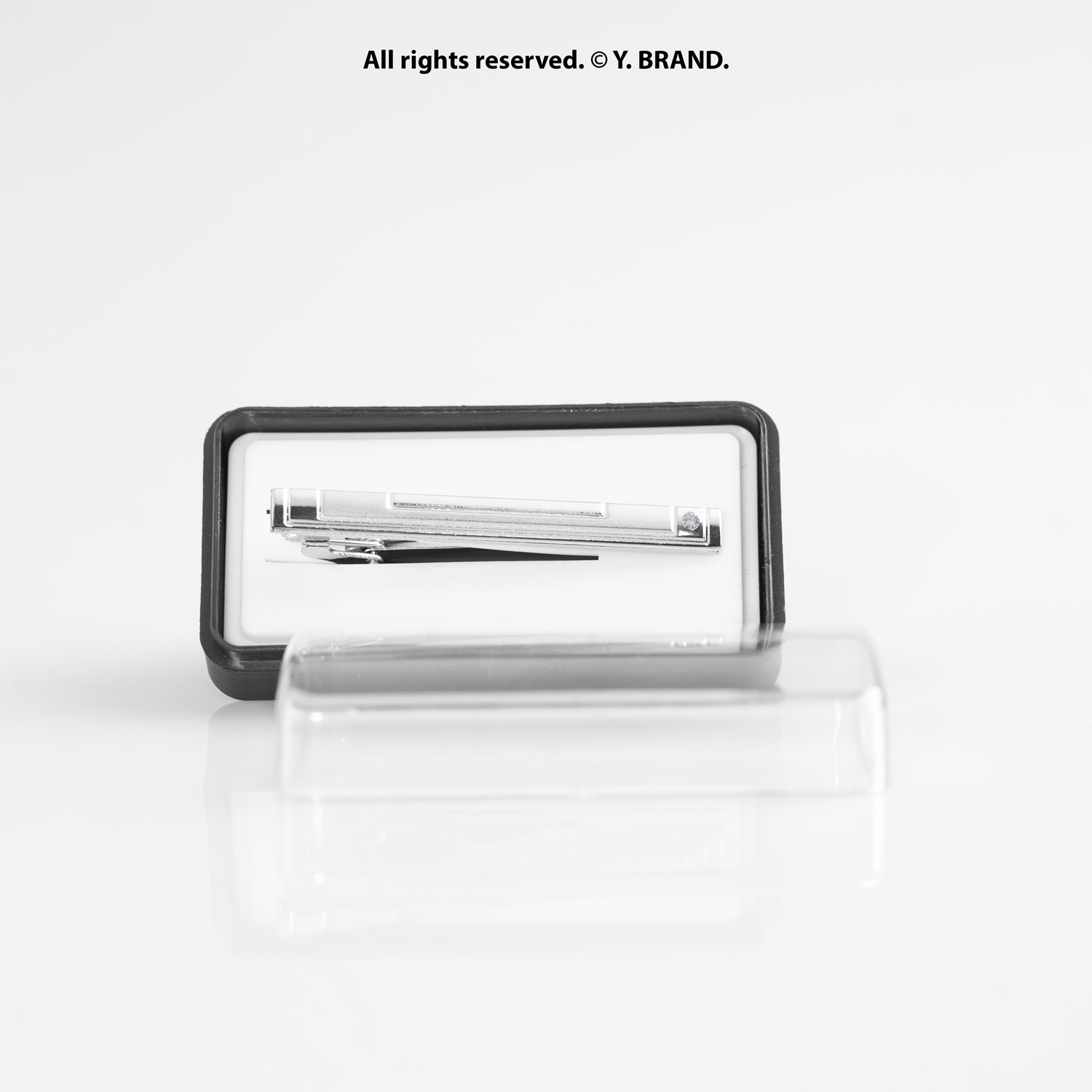 Sharp lines. Iconic detail. Keeps your tie in place all day. A precision-crafted tie clip built for the modern gentleman finished with a silver tone, secure slide-lock mechanism, and minimalist bar detailing. Perfect for formal events, office wear, and gifting.